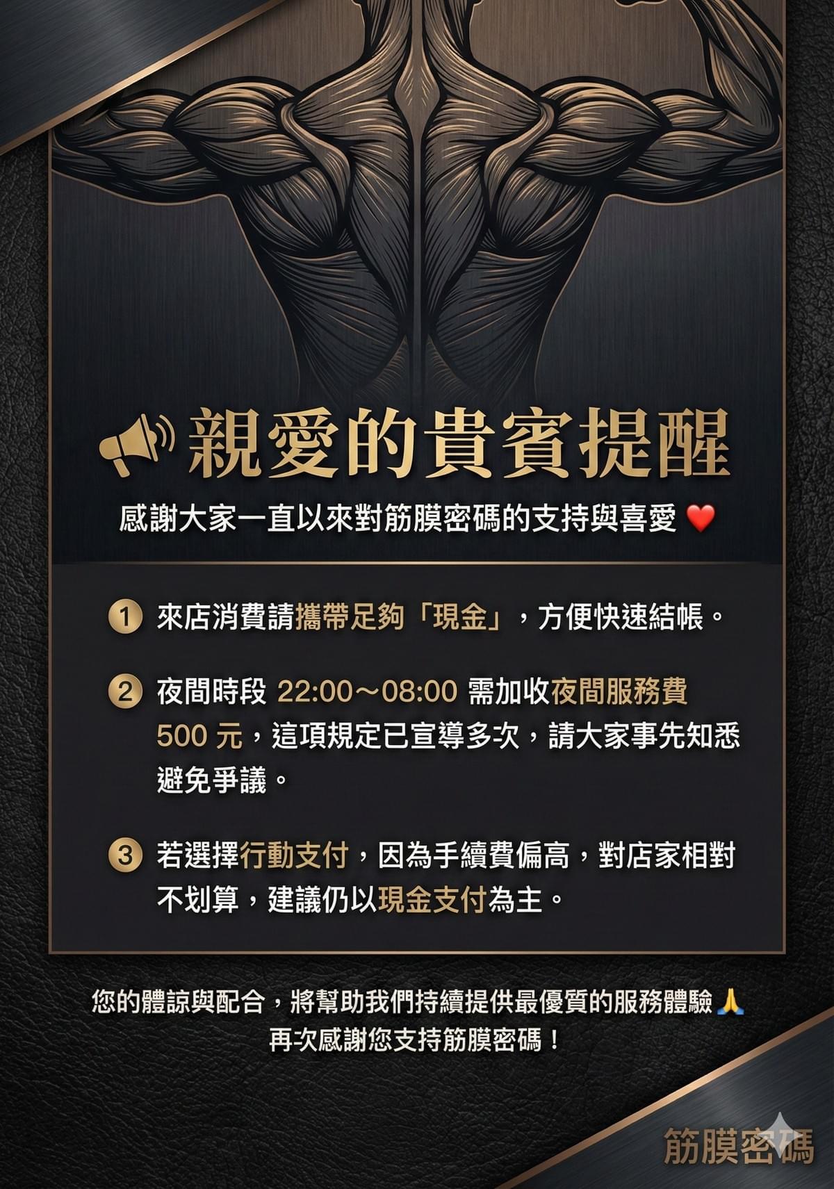 我相信按摩不僅是一種身體上的放鬆,更是一種心靈的療癒。我希望透過我的雙手,將溫暖與正能量傳遞給每一位客戶,幫助他們釋放壓力、找回平衡與活力。期待在筋膜密碼GAY SPA精油按摩與您相遇,讓我為您帶來最貼心的放鬆體驗。
