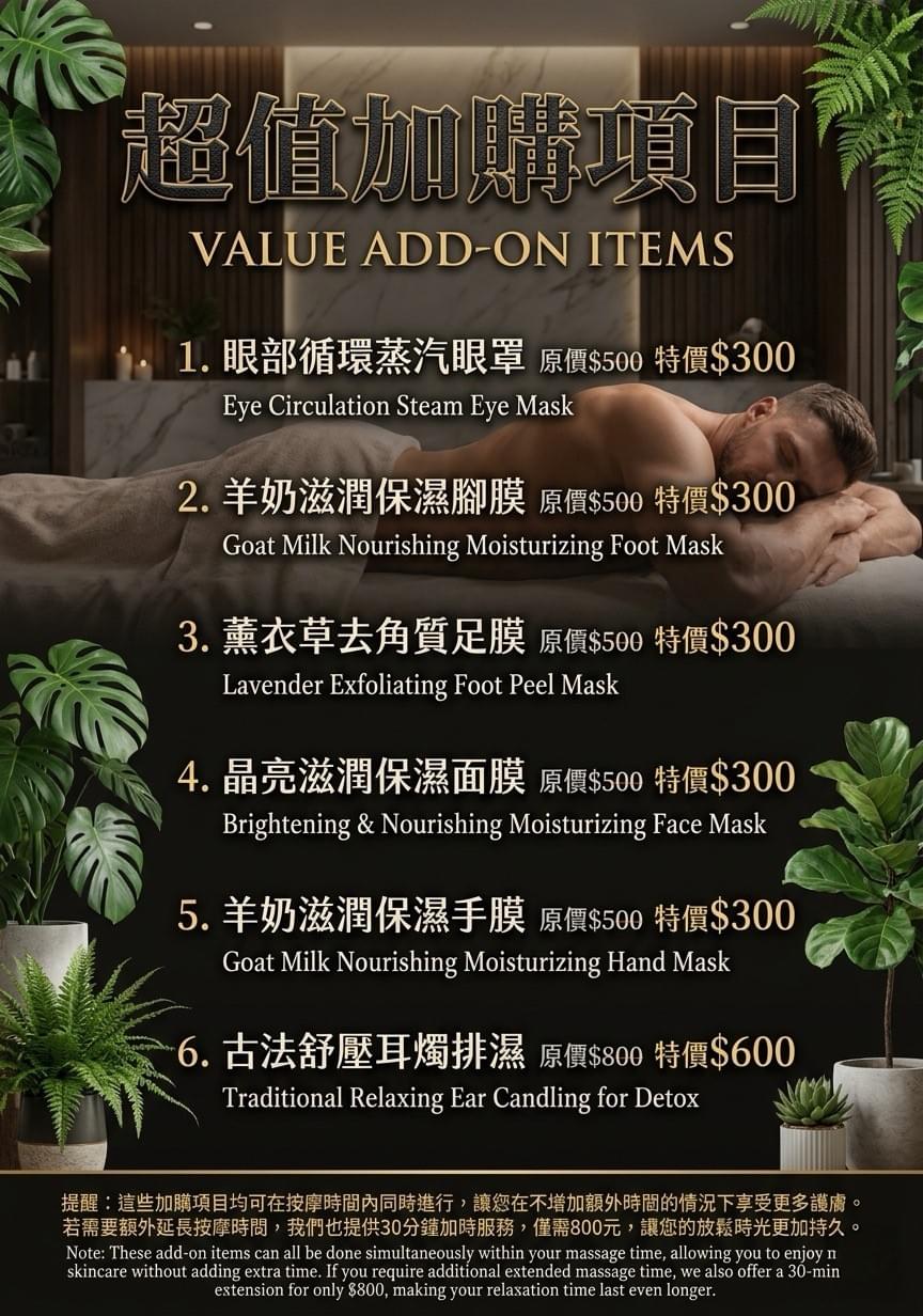 本館專業指油壓體推按摩,並未提供所謂「全套」「半套」或其他任何性服務內容。