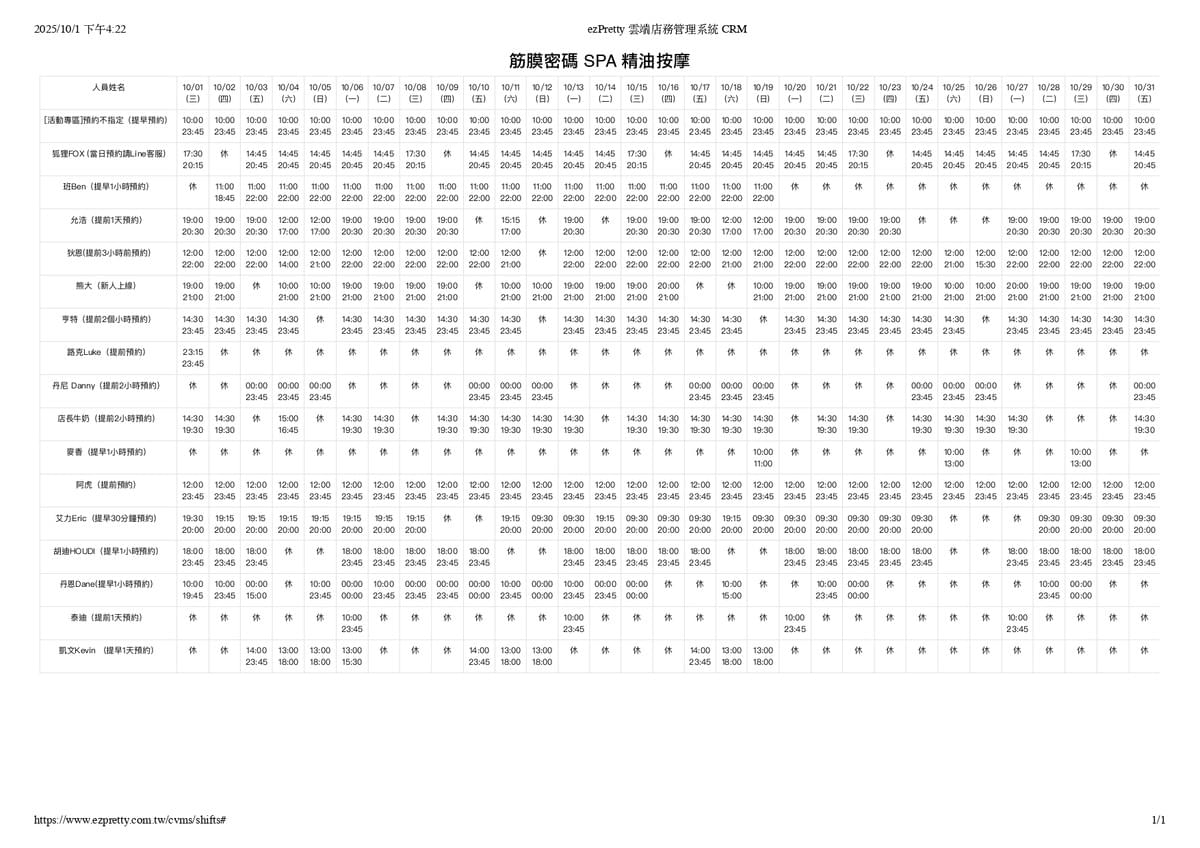 https://drive.google.com/file/d/1LO7LLp2XX_L2OKqKuyV7ziFood6TXnmS/view?usp=sharing點開網址可參考無損高畫質(注意這是預排班表,可能隨時有變動,以預約系統更新為主,此圖表為月初預先排班)