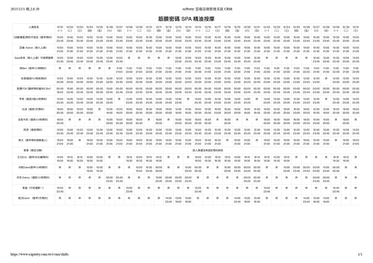 點開網址可參考無損高畫質(注意這是預排班表,可能隨時有變動,以預約系統更新為主,此圖表為月初預先排班)